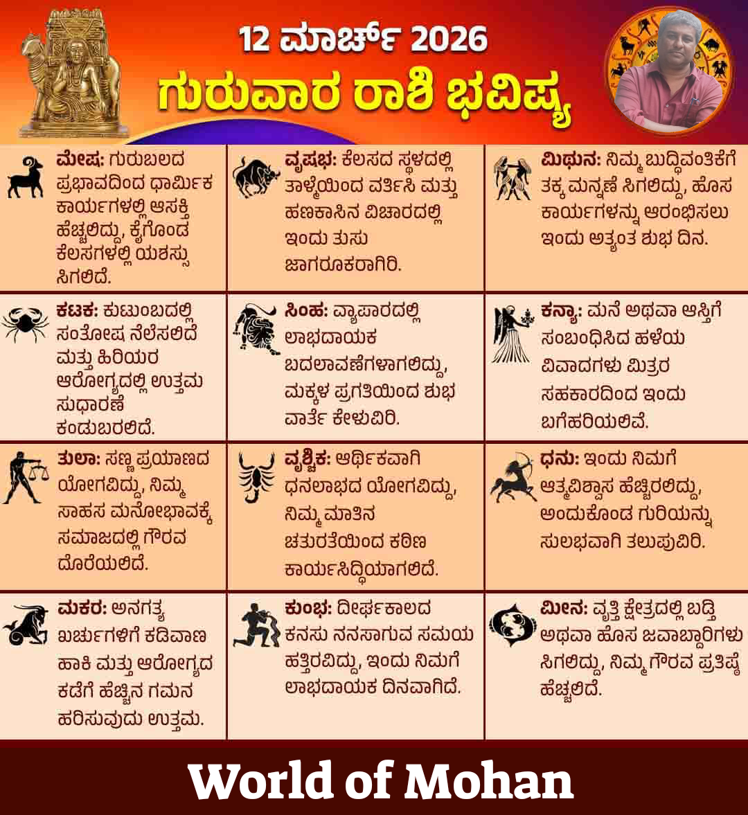 HomeUncategorizedDaily Horoscope Uncategorized Daily Horoscope By World of Mohan March 12, 2026 0 14 Share FacebookTwitterPinterestWhatsApp Daily Horoscope Share FacebookTwitterPinterestWhatsApp LEAVE A REPLY Cancel reply Comment: Please enter your comment! Name:* Please enter your name here Email:* You have entered an incorrect email address! Please enter your email address here Website: Save my name, email, and website in this browser for the next time I comment. Previous articleTake care of your health 💖Next articleThank you ❤️ World of Mohanhttps://worldofmohan.com RELATED ARTICLES Uncategorized Jumma Mubarak April 17, 2026 Uncategorized Bridge to Bangalore.. April 17, 2026 Uncategorized We the people… April 17, 2026 - Advertisment - Most Popular Jumma Mubarak April 17, 2026 Bridge to Bangalore.. April 17, 2026 We the people… April 17, 2026 Happy birthday Charlie Chaplin.. April 16, 2026 Load more Recent Comments Likith Raj V on 8th Anniversary.. 💞🌹💙 Likith Raj Kumar on 8th Anniversary.. 💞🌹💙 Danielle3925 on Happy birthday.. Anna Bond 💓 Ron1988 on Good luck.. On Akshya Tritiya.. ✌ Jacob4213 on Happy birthday.. Anna Bond 💓 Adalyn4924 on Happy birthday.. Anna Bond 💓 Gilbert3701 on Happy birthday.. Anna Bond 💓 Marissa4899 on Good luck.. On Akshya Tritiya.. ✌ Charlotte597 on Good luck.. On Akshya Tritiya.. ✌ Adria4785 on RCB LANDMARK VICTORY.. 🌹 Logan531 on Happy birthday.. Anna Bond 💓 Jean2583 on The Balance of Nature Camila1434 on Happy birthday.. Anna Bond 💓 Luky on ADVANCED VERSION OF THE WORLD OF MOHAN IS LIVE..