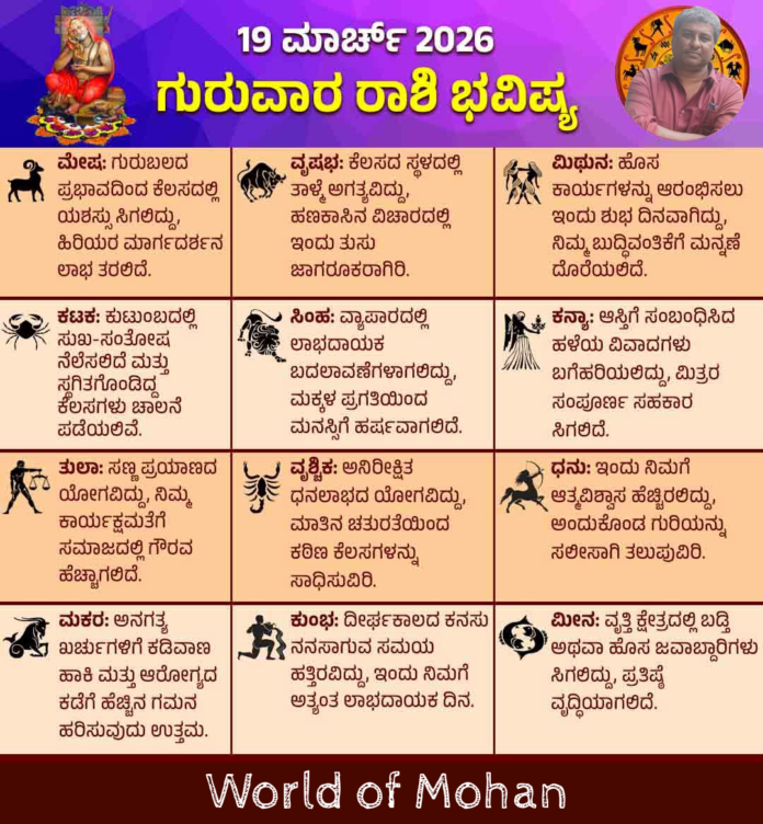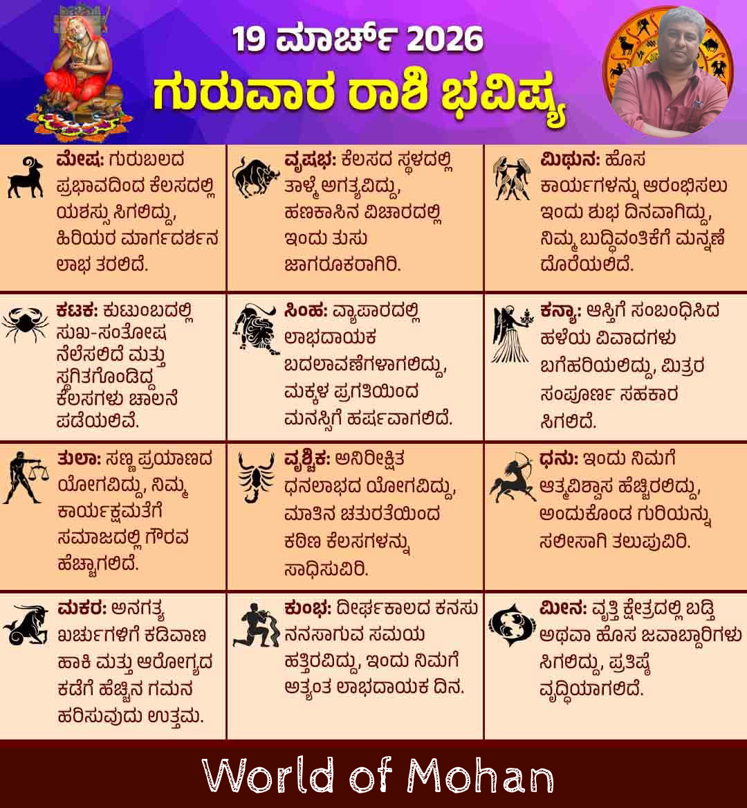HomeUncategorizedDaily Horoscope Uncategorized Daily Horoscope By World of Mohan March 19, 2026 0 14 Share FacebookTwitterPinterestWhatsApp Daily Horoscope Share FacebookTwitterPinterestWhatsApp LEAVE A REPLY Cancel reply Comment: Please enter your comment! Name:* Please enter your name here Email:* You have entered an incorrect email address! Please enter your email address here Website: Save my name, email, and website in this browser for the next time I comment. Previous articleThank you farmers 💚Next articleHappy Yugadi to All readers..❤️ World of Mohanhttps://worldofmohan.com RELATED ARTICLES Uncategorized Jumma Mubarak April 17, 2026 Uncategorized Bridge to Bangalore.. April 17, 2026 Uncategorized We the people… April 17, 2026 - Advertisment - Most Popular Jumma Mubarak April 17, 2026 Bridge to Bangalore.. April 17, 2026 We the people… April 17, 2026 Happy birthday Charlie Chaplin.. April 16, 2026 Load more Recent Comments Likith Raj V on 8th Anniversary.. 💞🌹💙 Likith Raj Kumar on 8th Anniversary.. 💞🌹💙 Danielle3925 on Happy birthday.. Anna Bond 💓 Ron1988 on Good luck.. On Akshya Tritiya.. ✌ Jacob4213 on Happy birthday.. Anna Bond 💓 Adalyn4924 on Happy birthday.. Anna Bond 💓 Gilbert3701 on Happy birthday.. Anna Bond 💓 Marissa4899 on Good luck.. On Akshya Tritiya.. ✌ Charlotte597 on Good luck.. On Akshya Tritiya.. ✌ Adria4785 on RCB LANDMARK VICTORY.. 🌹 Logan531 on Happy birthday.. Anna Bond 💓 Jean2583 on The Balance of Nature Camila1434 on Happy birthday.. Anna Bond 💓 Luky on ADVANCED VERSION OF THE WORLD OF MOHAN IS LIVE..