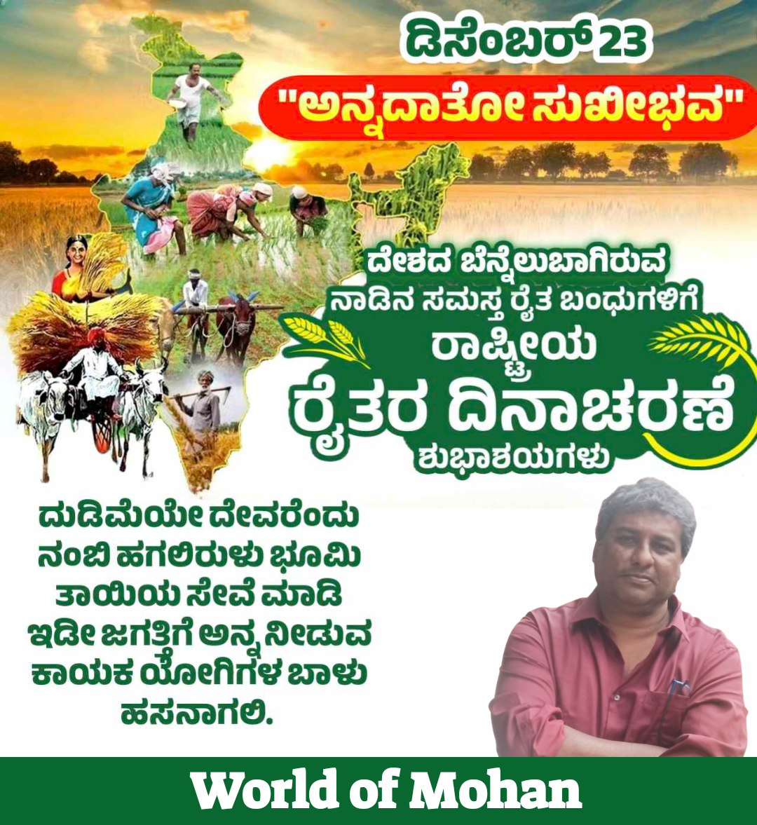 Breakfast,lunch and dinner farmers gives it all..be greatful and say Thank you Raitha (farmer) on this National Farmers Day….Team World of Mohan.