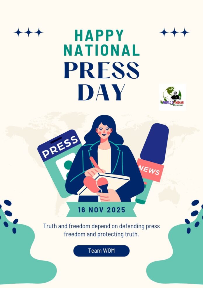 HomeAnnouncementsNational Press Day... Announcements National Press Day… By World of Mohan November 16, 2025 0 34 Share FacebookTwitterPinterestWhatsApp We stand for Freedom of speech and expression.. Happy National Press Day. TEAM World of Mohan. Share FacebookTwitterPinterestWhatsApp LEAVE A REPLY Cancel reply Comment: Please enter your comment! Name:* Please enter your name here Email:* You have entered an incorrect email address! Please enter your email address here Website: Save my name, email, and website in this browser for the next time I comment. Previous articlePredictions 16th Nov to 22nd NovNext article8th Anniversary.. 💞🌹💙 World of Mohanhttps://worldofmohan.com RELATED ARTICLES Announcements M Factor… Coming soon.. November 21, 2025 Announcements Happy Birthday to Tiger Sultan. 💐 November 20, 2025 Announcements Happy Birthday Milka Singh.. 💐 November 20, 2025 - Advertisment - Most Popular Jumma Mubarak April 17, 2026 Bridge to Bangalore.. April 17, 2026 We the people… April 17, 2026 Happy birthday Charlie Chaplin.. April 16, 2026 Load more Recent Comments Likith Raj V on 8th Anniversary.. 💞🌹💙 Likith Raj Kumar on 8th Anniversary.. 💞🌹💙 Danielle3925 on Happy birthday.. Anna Bond 💓 Ron1988 on Good luck.. On Akshya Tritiya.. ✌ Jacob4213 on Happy birthday.. Anna Bond 💓 Adalyn4924 on Happy birthday.. Anna Bond 💓 Gilbert3701 on Happy birthday.. Anna Bond 💓 Marissa4899 on Good luck.. On Akshya Tritiya.. ✌ Charlotte597 on Good luck.. On Akshya Tritiya.. ✌ Adria4785 on RCB LANDMARK VICTORY.. 🌹 Logan531 on Happy birthday.. Anna Bond 💓 Jean2583 on The Balance of Nature Camila1434 on Happy birthday.. Anna Bond 💓 Luky on ADVANCED VERSION OF THE WORLD OF MOHAN IS LIVE..