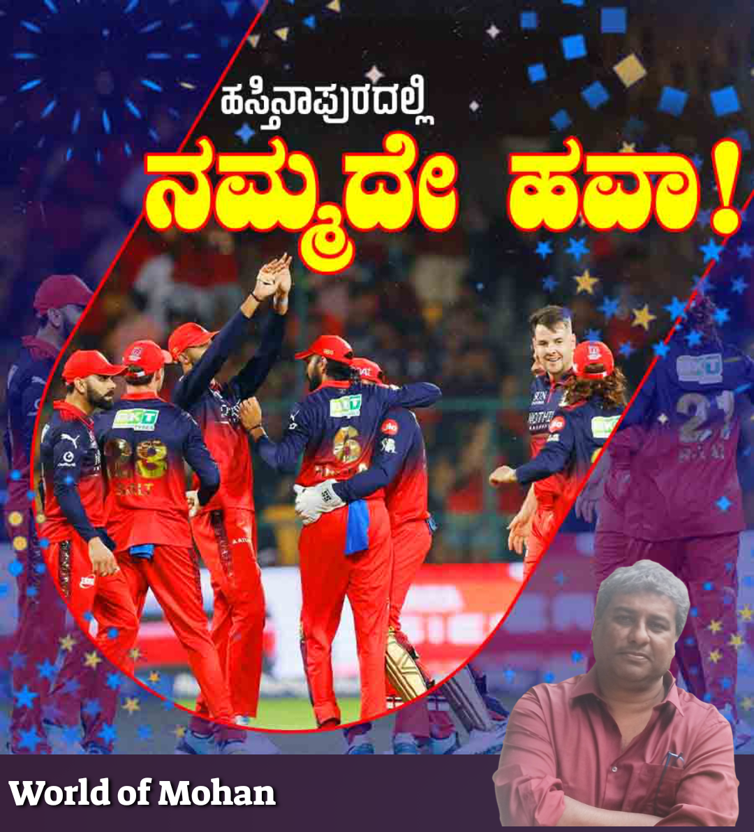RCB RCB RCB… Hange kuniro Hinge kuniro..namma muddu madayanni ge… Toss gellodrinda winning shot vargu…RCB minchingo minching… Hazel wood Bhuvaneshwar bowlinge DC full March fast parade 75 all out…ellaru ducko ducku… RCB kela beka 6.3 overs match over..kholi bhethal padikala full chuching… result fastest run chase in IPL history.. Innu en odtha Idira.. come on let’s dance… If you come today.. it’s too early…if you come tomorrow it’s tooo late…you pick the time ah tick tick tick tick tick.. Darling…😜