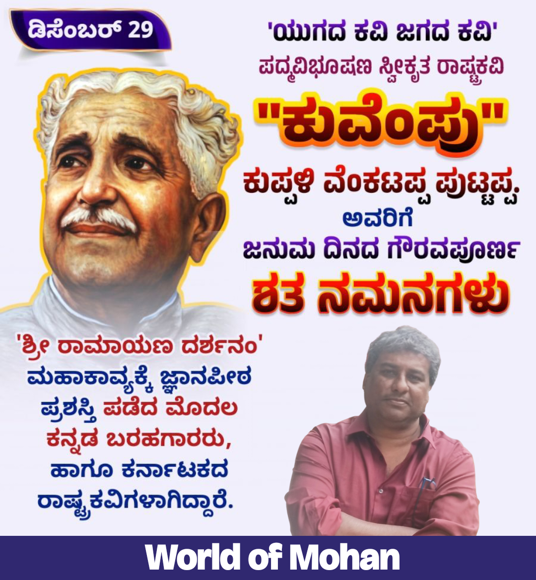 If not the best Kuvempu is beyond any doubt one of The Best Authors and poets of the world. honoured as Rashtra Kavi in Karnataka is known for his revolutionary thoughts and concept of Viswamanava ( Global human who above the World ly divisions like caste or religion) . Kevumpu is for ever inspiration for Kannadigas. Team Wom celebrates Kuvempu s Birthday..❤️💛🎊🎉💐💞🌹