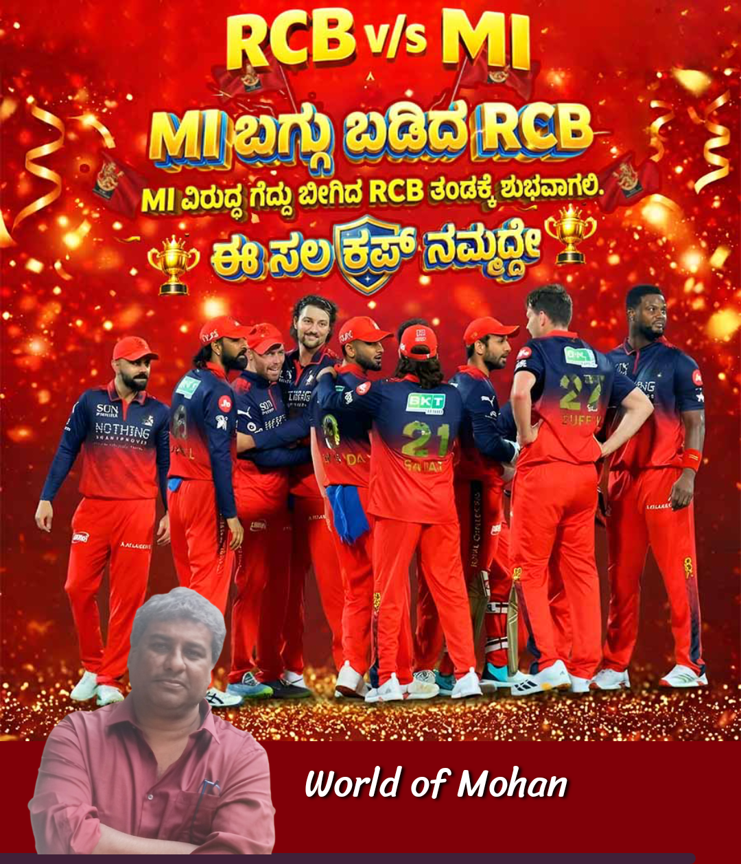 Fans were little worried when RCB lost the toss..and. Mumbai choose to field.. But defending champions completely dominated the match.. Salt and Kholi partnship partnership put RCB on a comfortable safe position on the score board.. Especially salt didnot waste single ball . Patidar matched salt by smashing 53 out of just 20 balls.. RCB scored 240 in 20 overs. MI tried well but could get only 222 runs in 20 overs.. RCB won by 18 runs. phil Salt who hit 78 out of 36 balls was named Man of the Match.. Congratulations maga Sports Bureau, Mumbai, World ofMohan.
